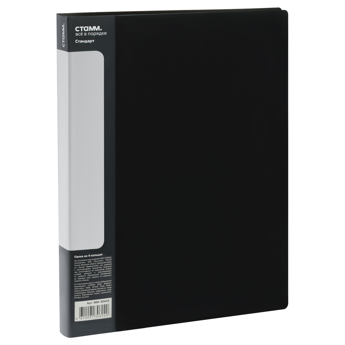 Папка на 4 кольцах СТАММ Стандарт А4, 25мм, 700мкм, пластик, черная (ММ-30604)