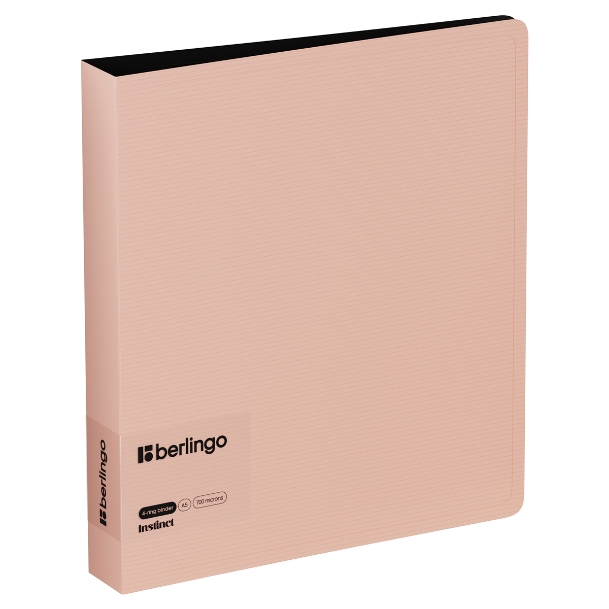 Папка на 4 D–кольцах Berlingo серии Instinct формата А5 – стильный аксессуар для офиса и учёбы. Насыщенный пастельный розовый цвет внешней стороны в сочетании с фактурой «горизонтальные линии», чёрный цвет внутренней поверхности. Толщина обложки – 700 мкм. Ширина корешка составляет 35 мм. Стильные черные кольца и фурнитура. Специальная D–форма колец диаметром 30 мм помогает удобно и ровно хранить документы, которые могут быть выровнены по левому краю, благодаря боковой вертикальной стенке кольца. Вместимость папки – 150 листов. На внутренней стороне обложки папка оснащена плотным прозрачным карманом для удобного хранения мелочей: ручки, заметок, визиток, дисков, флешек и др. Размер папки составляет 225*200*35 мм. Упакована в индивидуальный прозрачный пакет по форме.
