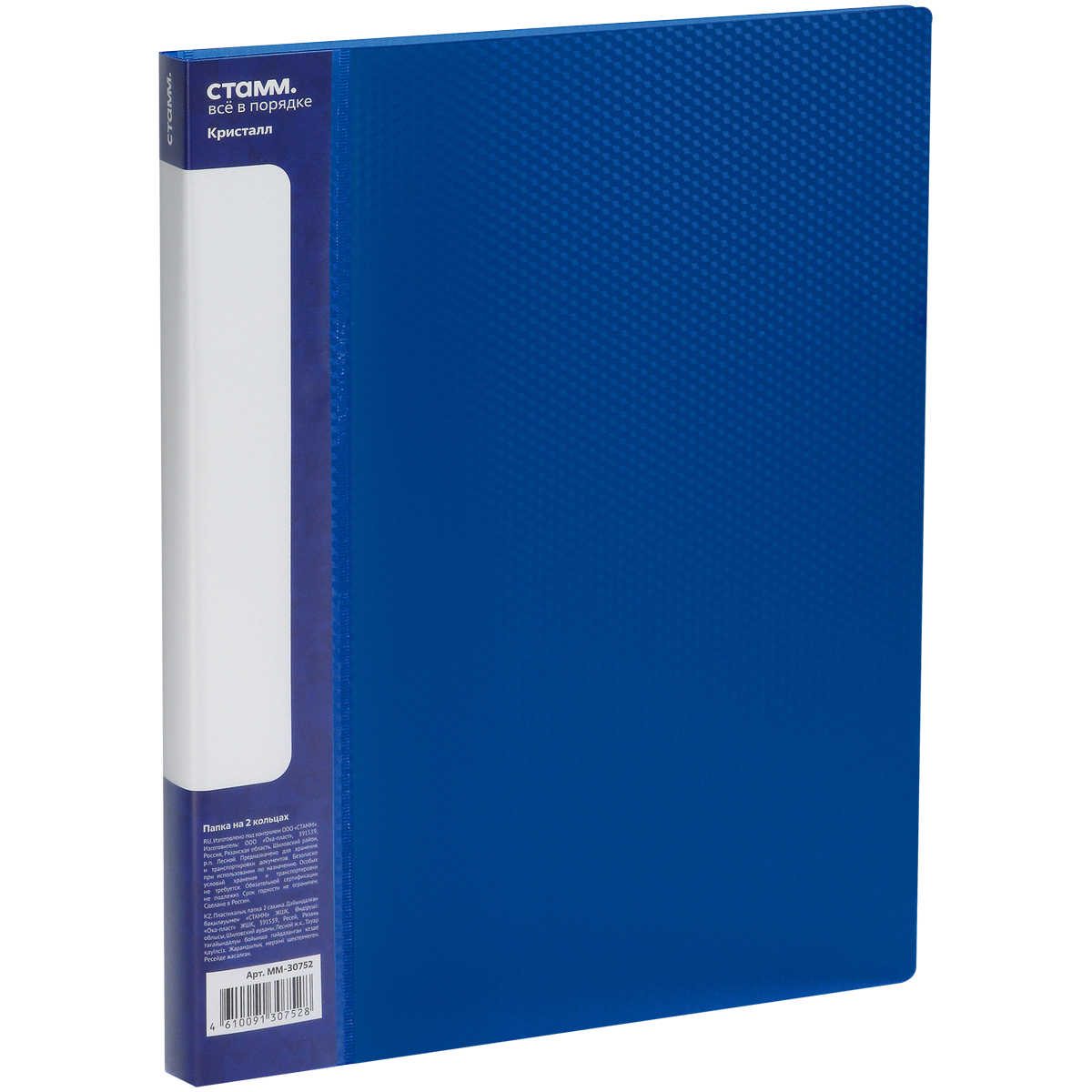 Папка на 2 кольцах СТАММ Кристалл А4, 25мм, 700мкм, пластик, синяя (ММ-30752)