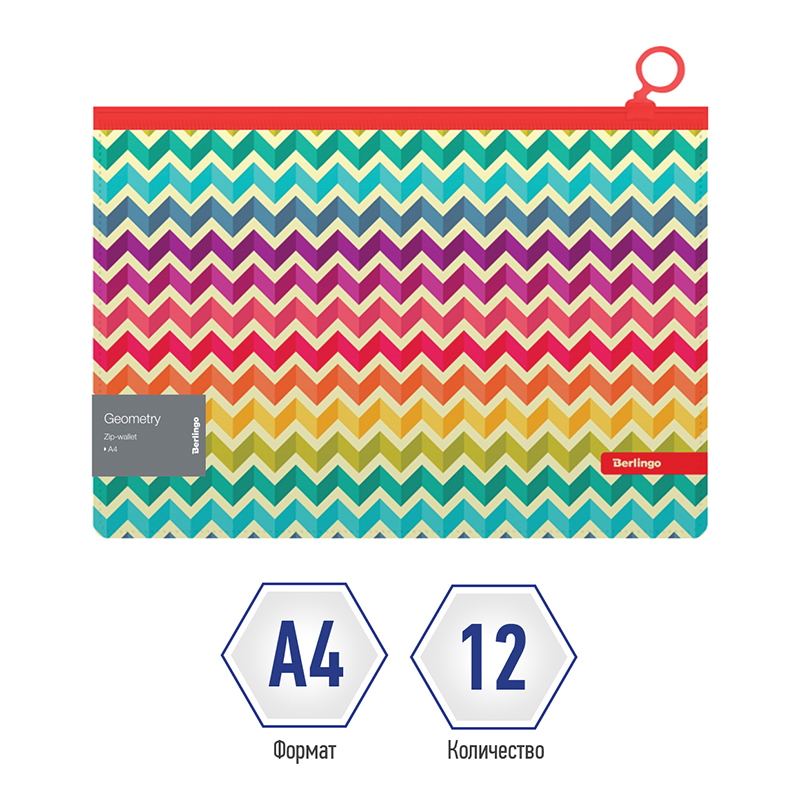 Папка-конверт на молнии Berlingo Geometry А4, 180мкм, с рисунком (ZBn_A4101)