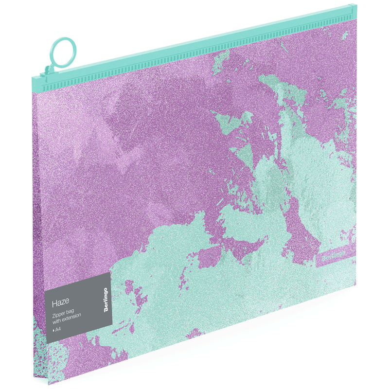 Папка-конверт на молнии с расширением Berlingo Haze А4, 180мкм, сиреневая/мятная, с рисунком, с эффектом блесток (ZGx_A4924)