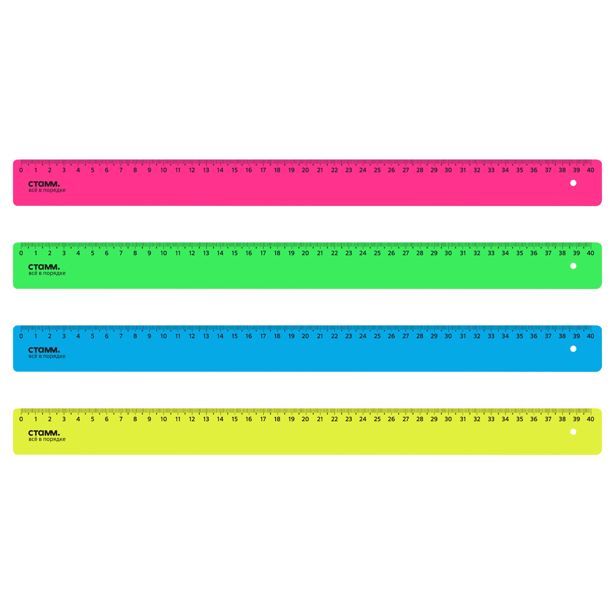 Линейка 40см СТАММ, пластиковая, непрозрачная, неоновые цвета, ассорти (ЛН51)описаниеЛинейка СТАММ Neon – отличный помощник для создания ровных линий. Размер товара – 40 см, ширина – 32 мм. Изделие имеет прочный и лёгкий корпус, безопасные закруглённые края и чёткую контрастную миллиметровую шкалу. Товар представлен в ярких флуоресцентных цветах.