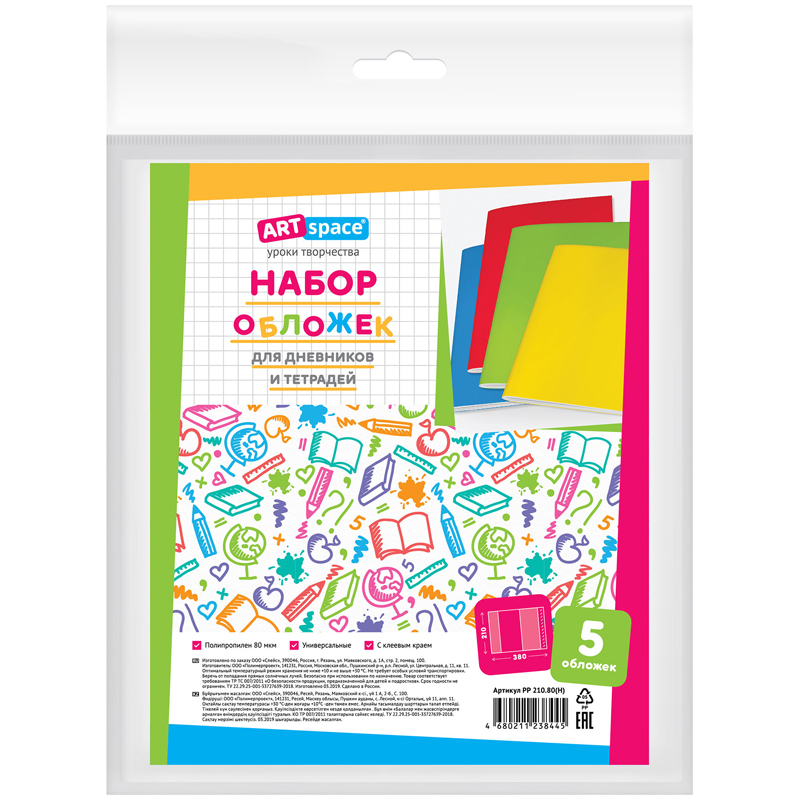 Обложка является незаменимым помощником для каждого из нас, т.к. современная тенденция к чтению печатной книги наращивает свои обороты, а для школьника это неотъемлемый атрибут. Обложка сохраняет первоначальный вид учебника/книги, защищает от грязи, пыли, механических и прочих повреждений. Набор универсальных обложек с клеевым краем для дневников и тетрадей из глянцевой прозрачной высококачественной полипропиленовой пленки. Купите товар «Набор обложек (5шт.) 210*380 для дневников и тетрадей, универсальная с липким слоем, ArtSpace, ПП 80мкм (PP 210.80(Н))» по оптовой цене с доставкой или самовывозом.