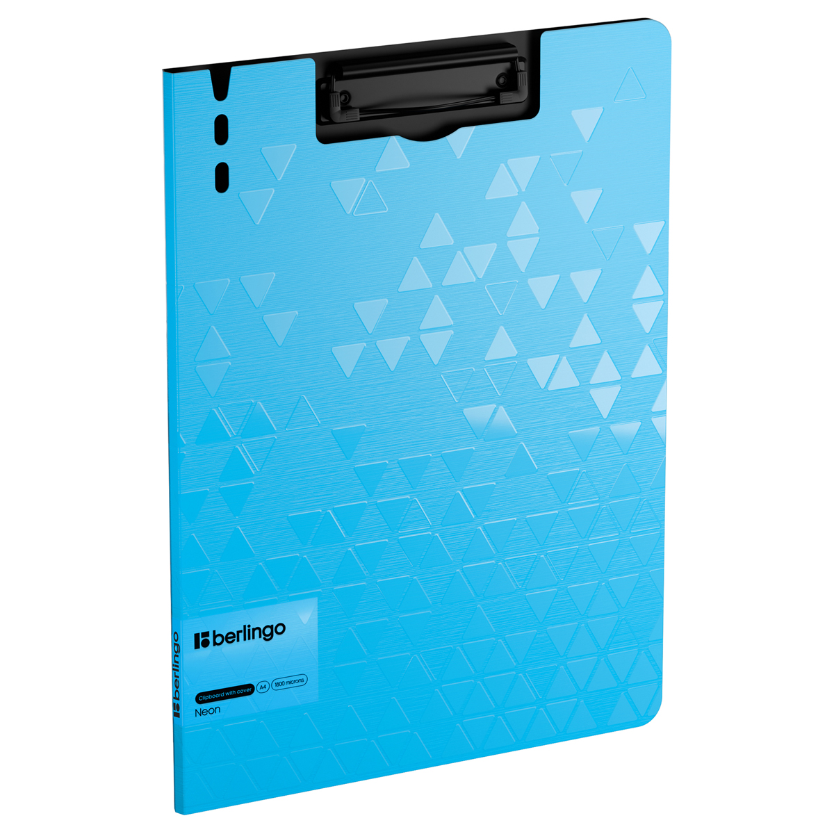 Папка–планшет с зажимом Berlingo серии Neon размером 320*225 мм изготовлена из плотного пластика (полифом) толщиной 1, 8 мм. Вместимость папки – 100 листов, ширина корешка – 10 мм. Яркий голубой неоновый цвет внешней стороны в сочетании с уникальной фактурой поверхности, чёрный цвет внутренней поверхности с прижимом. Чёрный металлический зажим для фиксации документов. Возможность раскрытия папки на 360 градусов. Вырубки на крышке позволяют легко закрепить ручку на папке. Позволяет делать записи на весу. Индивидуальная упаковка в пакет.