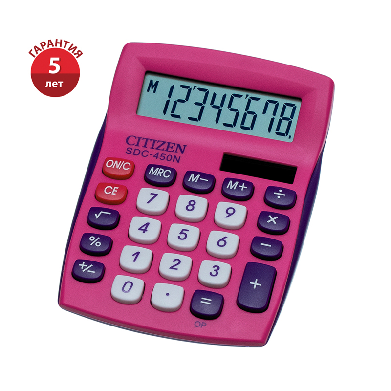 • Подходит для ЕГЭ. Купите товар «Калькулятор настольный Citizen SDC-450NPKCFS, 8 разрядов, двойное питание, 87*120*22мм, розовый (SDC-450NPKCFS)» по оптовой цене с доставкой или самовывозом.