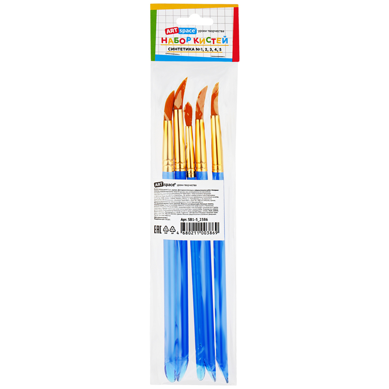 Набор кистей ArtSpace 5шт., синтетика, круглые, № 1, 2, 3, 4, 5, пакет, европодвес (SB1-5_2386)