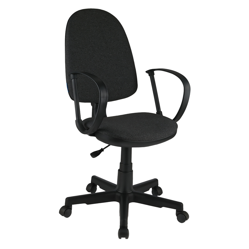 Максимальная нагрузка – 100 кг. Газпатрон 2 категории. Каркас – немонолитный, материал набивки – поролон, крестовина – пластик, материал обивки – ткань чёрного цвета. Механизм регулировки кресла по высоте, со свободным ходом отклонения спинки кресла и регулировкой жесткости, но без какой-либо фиксации.