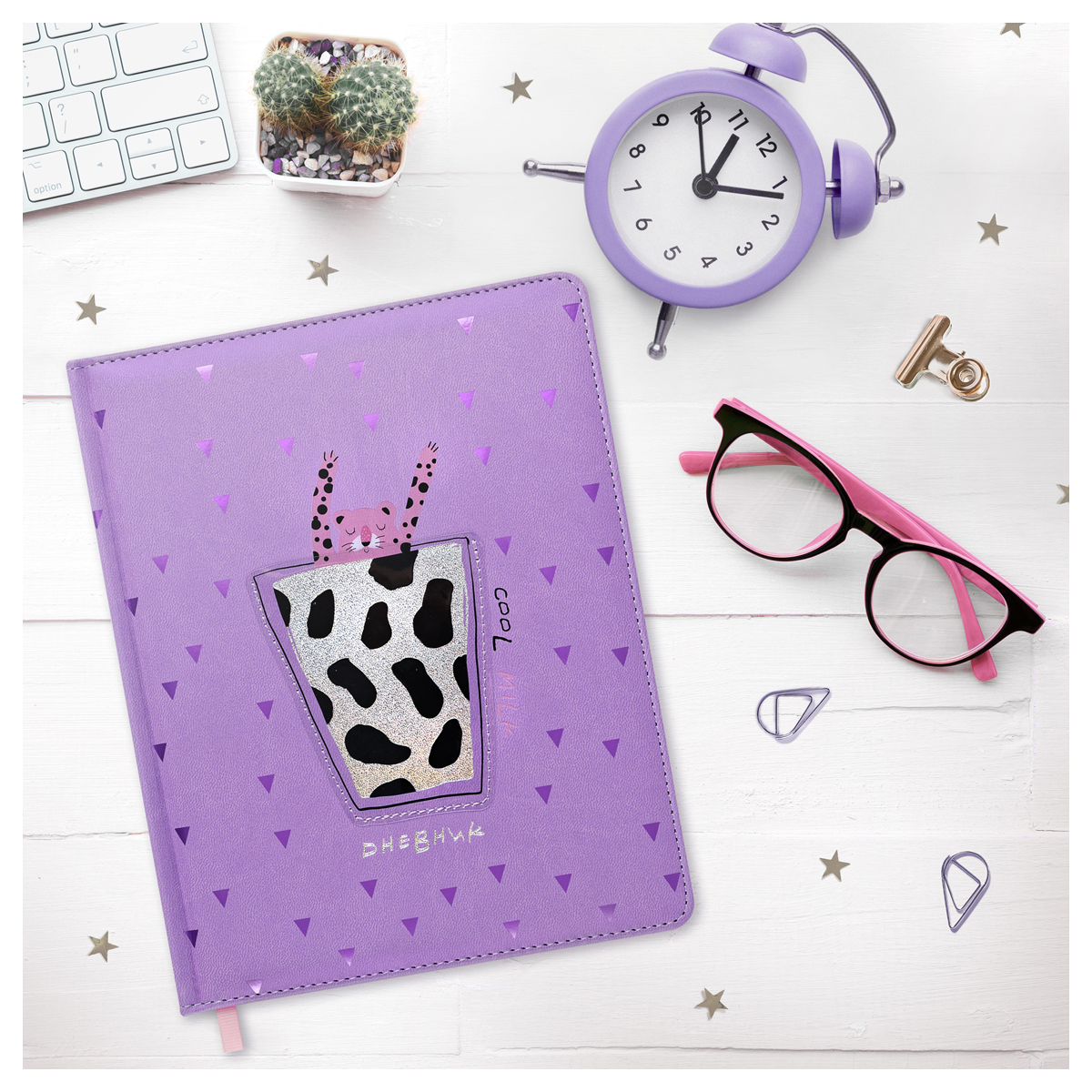 Дневник 1-11 кл. 48л. (твердый) MESHU Cool milk , иск. кожа, УФ-печать, тиснение фольгой, аппликация, тон. блок, ляссе (MS_49364)