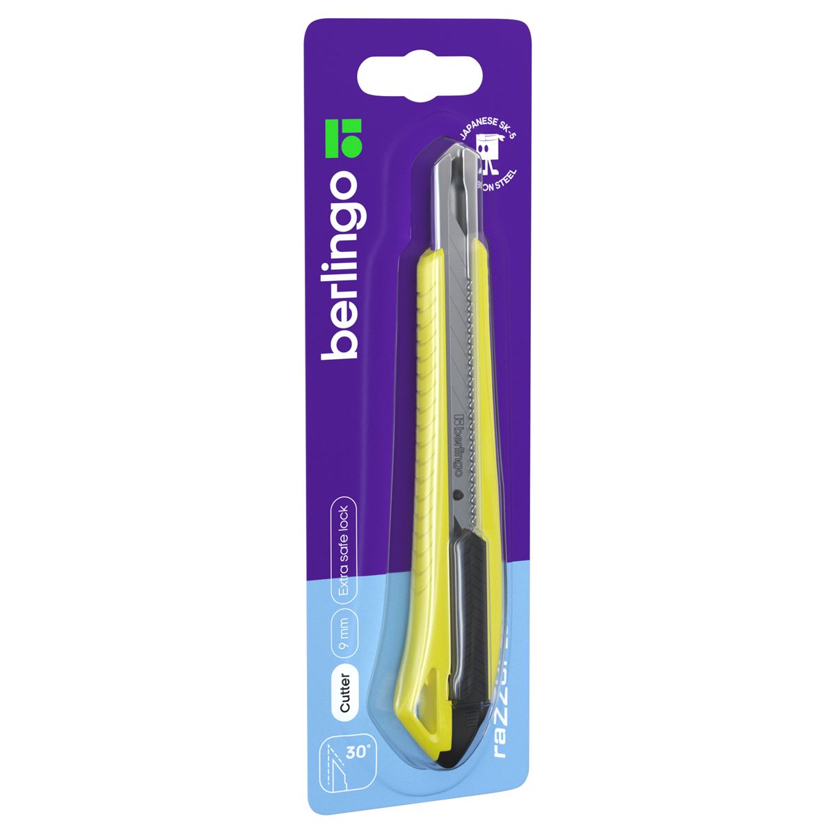 Нож канцелярский 9мм Berlingo Razzor 300 , auto-lock, металл. направл., мягкие вставки, желтый, европодвес (BM4131_b)описаниеКанцелярский нож Berlingo серии Razzor 300 жёлтого цвета выполнен из высококачественного ABS пластика с применением технологии двойного литья (прорезиненные вставки). Имеет металлические направляющие. Ширина лезвия: 9 мм. Модель имеет автоматическую фиксацию лезвия AUTO-LOCK и дополнительно оснащена замком блокировки. Комплектуется износостойким лезвием из стали SK5 с углом 30°. Индивидуальная упаковка – блистер с европодвесом. На оборотной стороне блистера есть перфорация для более удобного изв ... [Подробнее на странице товара]Сумма заказа всех товаров с этого склада должна быть не менее 3000 р. Доставка от 4 дней