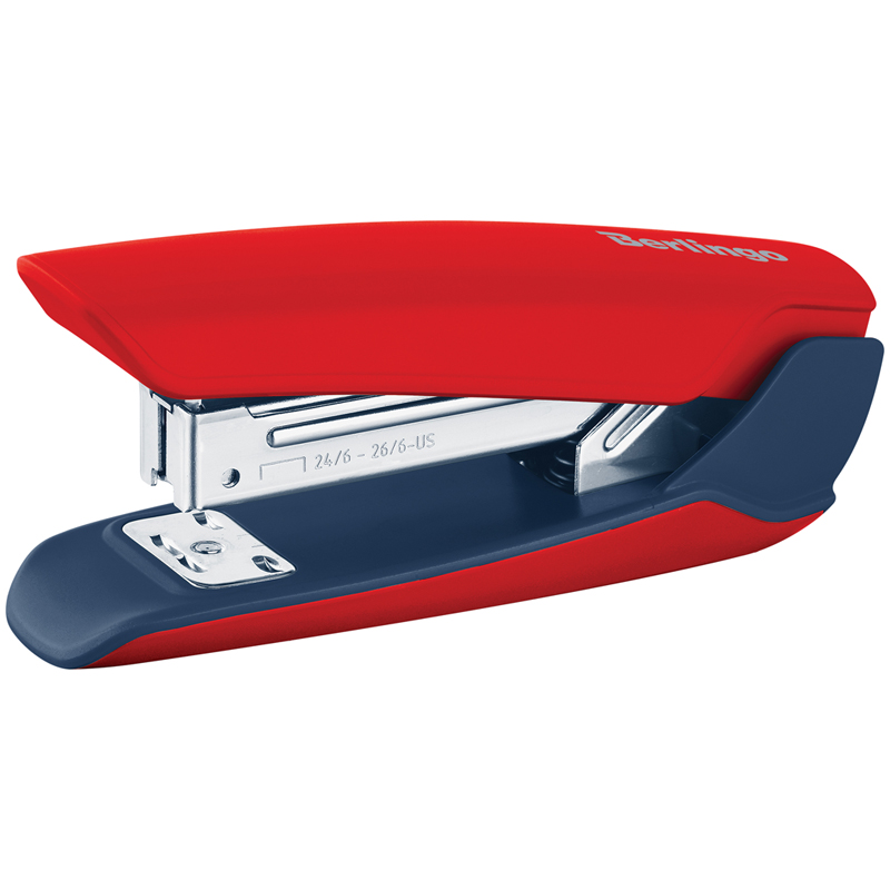 Степлер №24/6, 26/6 Berlingo Hyper до 25л., пластиковый корпус, красный (KSn_25224)