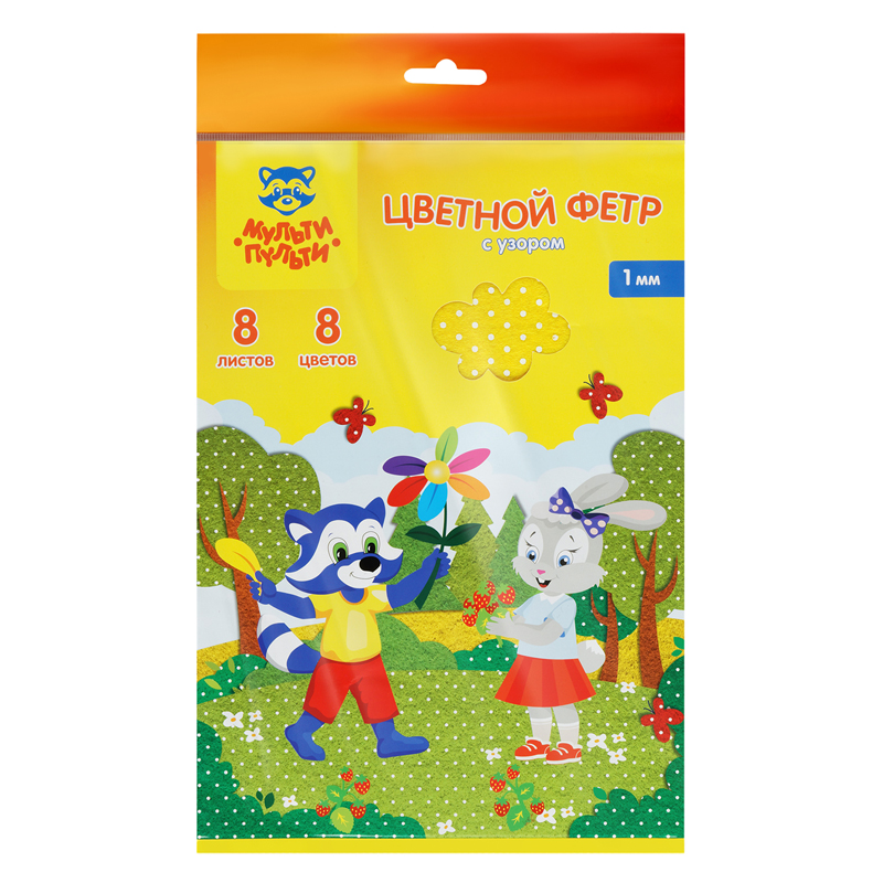 Фетр Мульти-Пульти, А4, 8л., 8цв., 1мм, с узором Ассорти , Енот в Волшебном мире (ФЦ8у_38699)описаниеНабор цветного мягкого фетра Мульти-Пульти отлично подойдет для творческих работ, аппликаций и различных поделок. Принтованные поверхности материала позволят реализовать самые яркие поделки. В наборе представлена палитра из 8 цветов. Листы имеют размер 200*285мм. Толщина листа 1мм. Сумма заказа всех товаров с этого склада должна быть не менее 3000 р. Доставка от 4 дней