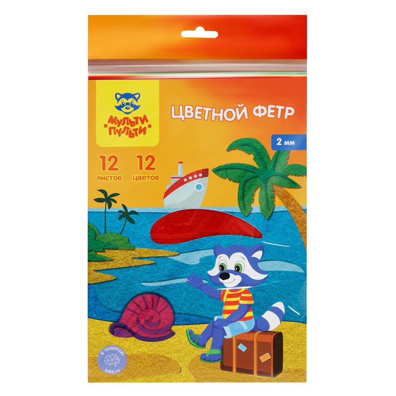 Набор цветного мягкого фетра Мульти-Пульти отлично подойдет для творческих работ, аппликаций и различных поделок. В наборе представлен большая палитра из 12 цветов. Листы имеют размер 200*285мм. Толщина листа 2мм. Купите товар «Фетр Мульти-Пульти, А4, 12л., 12цв., 2мм, Приключения Енота (ФЦ12_38694)» по оптовой цене с доставкой или самовывозом.