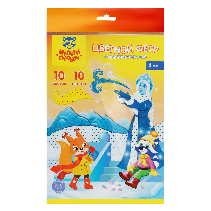 Фетр Мульти-Пульти, А4, 10л., 10цв., 2мм, перфорированный, Енот в волшебном мире (ФЦ10п_38696)