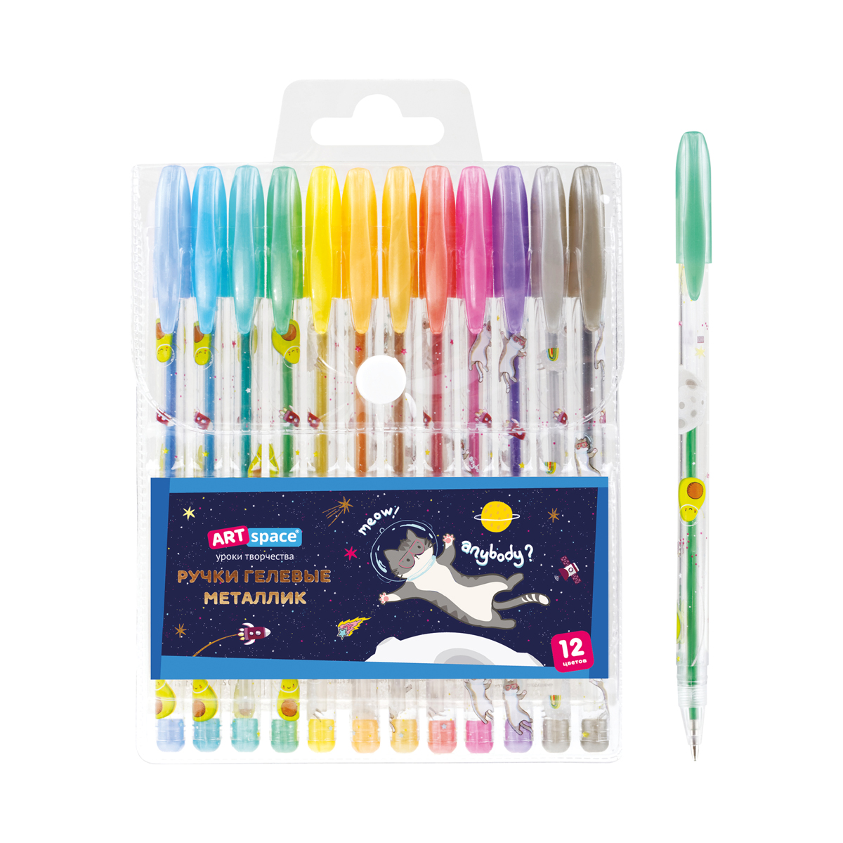 Набор гелевых ручек ArtSpace Космические приключения 12цв., 1,0мм, металлик, ПВХ чехол (GPSA12_53128)