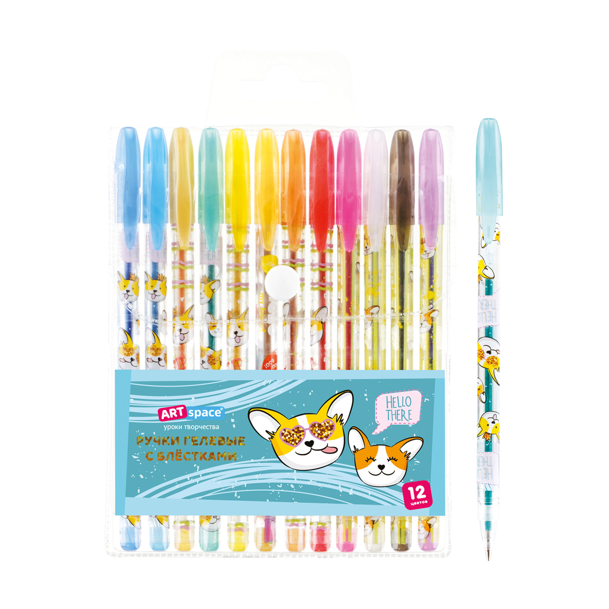 Набор гелевых ручек с глиттером, 12 цв., цвет чернил — ассорти, в блистере с ероподвесом размерами 17, 5х12х1, 5 мм. Длина ручки с колпачком 149 мм, без колпачка 140 мм, длина стержня 130 мм. Диаметр корпуса 8 мм. Длина письма 1 ручки 250 - 300 м. Перед использованием рекомендовано встряхнуть ручку вниз пишущим узлом. Купите товар «Набор гелевых ручек ArtSpace Милые зверушки 12цв., 1,0мм, с блестками, ПВХ чехол (GPCA12_53166)» по оптовой цене с доставкой или самовывозом.