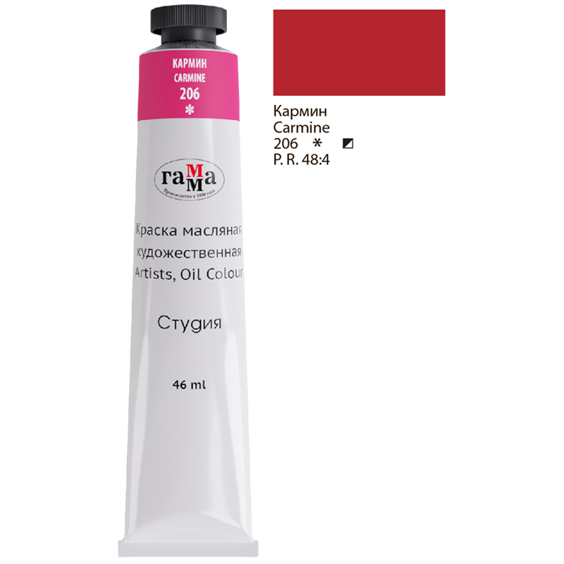 Масляные краски "Гамма" серии "Студия" изготавливаются из льняного масла, органических и неорганических пигментов. Кадмиево- кобальтовая группа заменена имитацией, что делает краски безопасными. Также в состав красок входит пчелиный воск, он придает краскам пастозную консистенцию и предотвращает от растрескивания после высыхания. Цветовой диапазон включает в себя как укрывистые краски, так и прозрачные. Масляные краски подходят для обучения и начинающих художников. Купите товар «Краска масляная художественная Гамма Студия , 46мл, туба, кармин (0.00.А046.206)» по оптовой цене с доставкой или самовывозом.