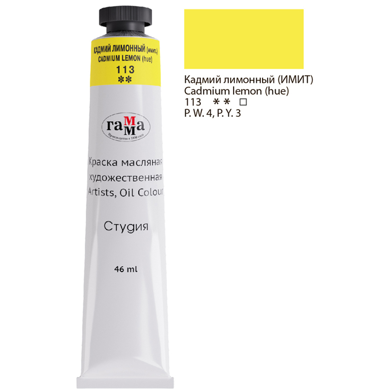 Масляные краски "Гамма" серии "Студия" изготавливаются из льняного масла, органических и неорганических пигментов. Кадмиево- кобальтовая группа заменена имитацией, что делает краски безопасными. Также в состав красок входит пчелиный воск, он придает краскам пастозную консистенцию и предотвращает от растрескивания после высыхания. Цветовой диапазон включает в себя как укрывистые краски, так и прозрачные. Масляные краски подходят для обучения и начинающих художников. Купите товар «Краска масляная художественная Гамма Студия , 46мл, туба, кадмий лимонный (имит.) (0.00.А046.113)» по оптовой цене с доставкой или самовывозом.