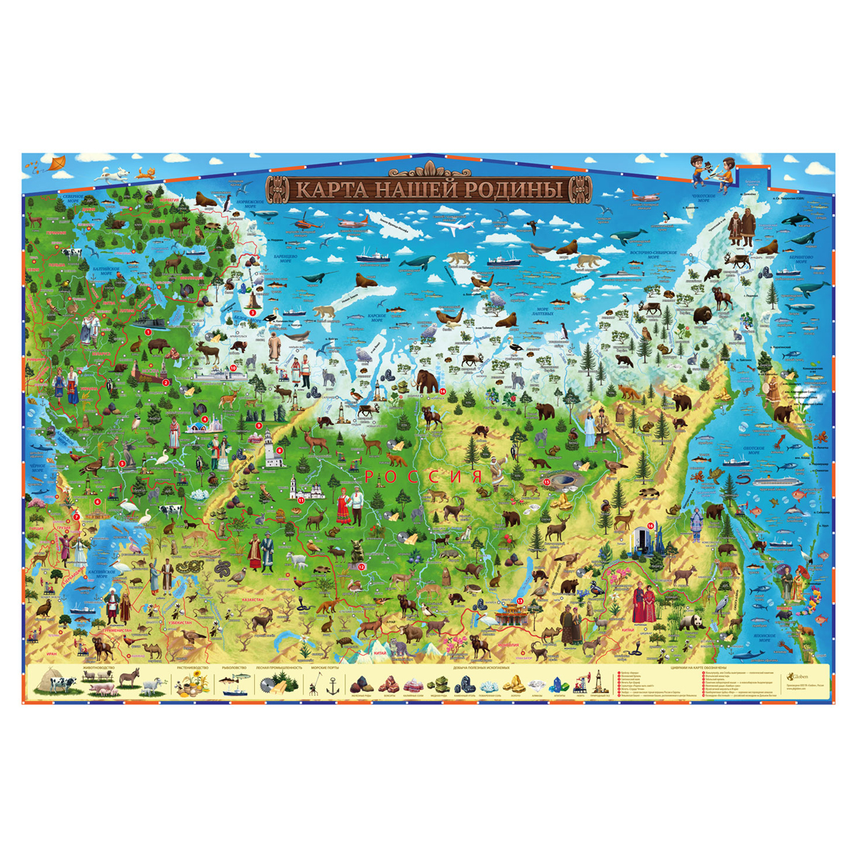 Карта России для детей Карта нашей Родины Globen, 590*420мм, интерактивная (КН015)описаниеИнтерактивная карта для детей Карта нашей Родины Globen расскажет о населяющих Россию и страны СНГ народах, об обитателях пустынь, степей и лесов, об исторических открытиях и великих событиях. Достаточно просто скачать бесплатное приложение IQ Map на смартфон или планшет, чтобы простая карта превратилась в живую . Навести камеру смартфона на карту, подождать несколько секунд до появления эффекта AR-технологий. Такая карта, использующая AR-технологии, поможет ребенку намного быстрее и лучше ус ... [Подробнее на странице товара]Сумма заказа всех товаров с этого склада должна быть не менее 3000 р. Доставка от 4 дней
