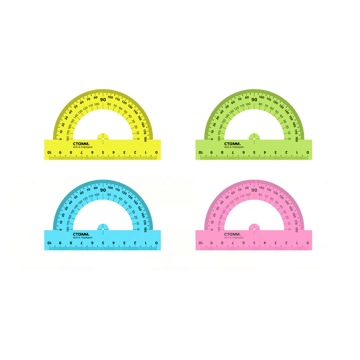 Транспортир 10см, 180° СТАММ, пластиковый, прозрачный, неоновые цвета, ассорти (ТР11)